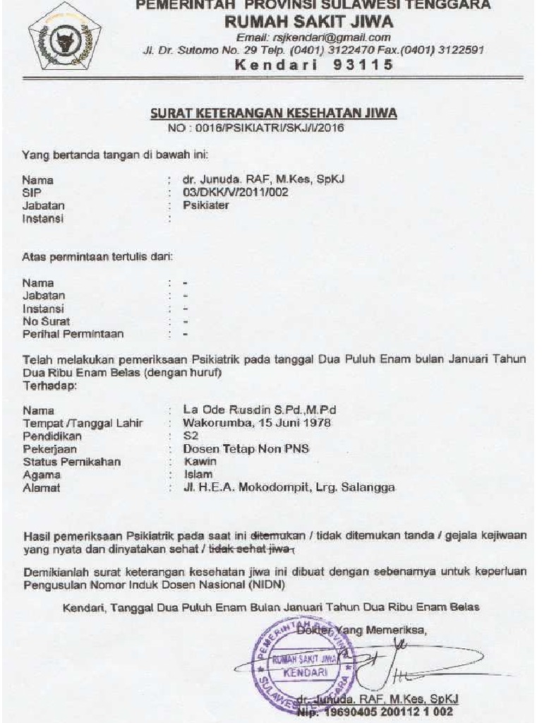 Contoh Surat Keterangan Sakit Jiwa Dari Dokter Nusagates